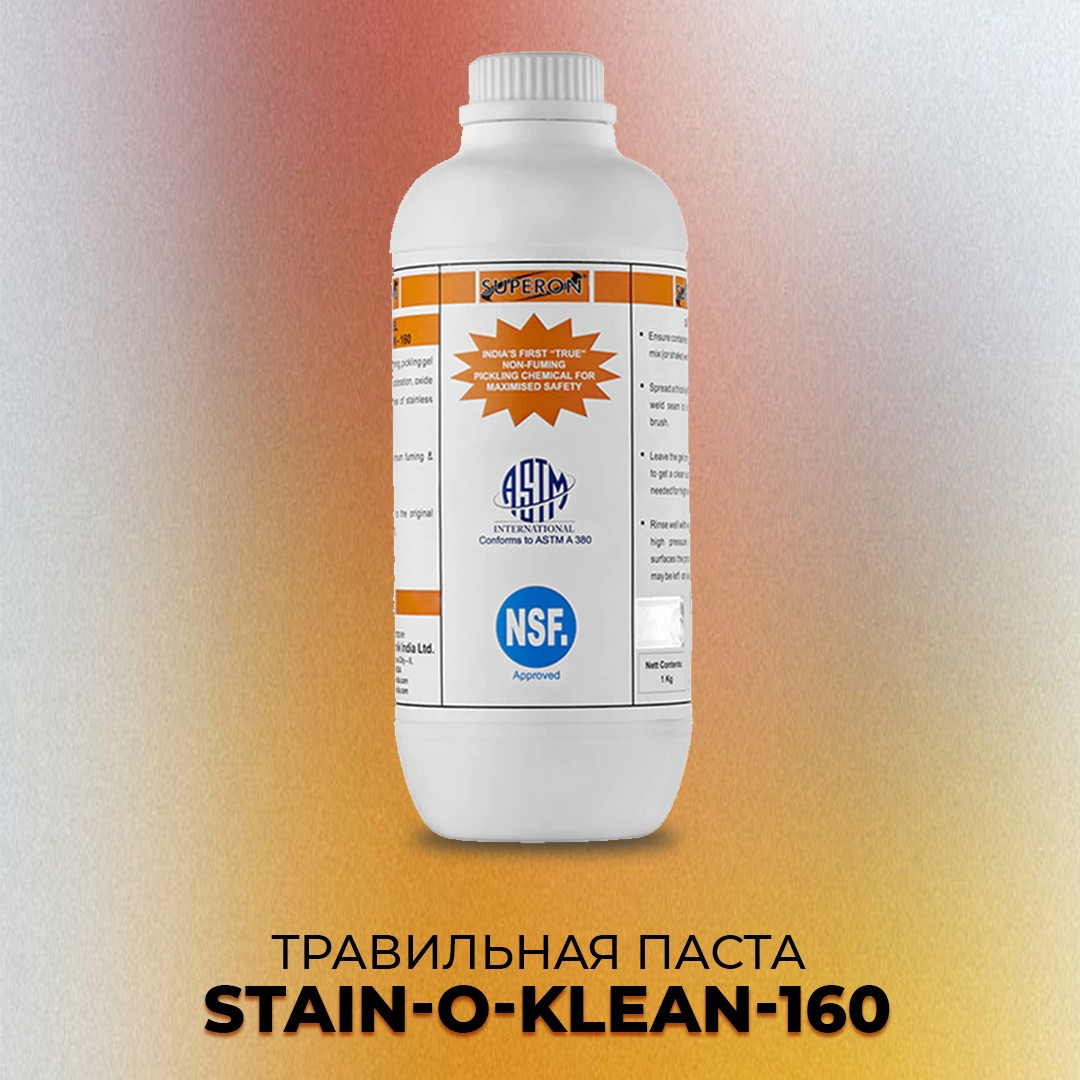 STAIN-O-KLEAN-160 — это уникальное химическое средство для удаления следов воздействия высоких температур, изменения цвета сварных швов, окалины и ржавчины со всех марок нержавеющей стали.